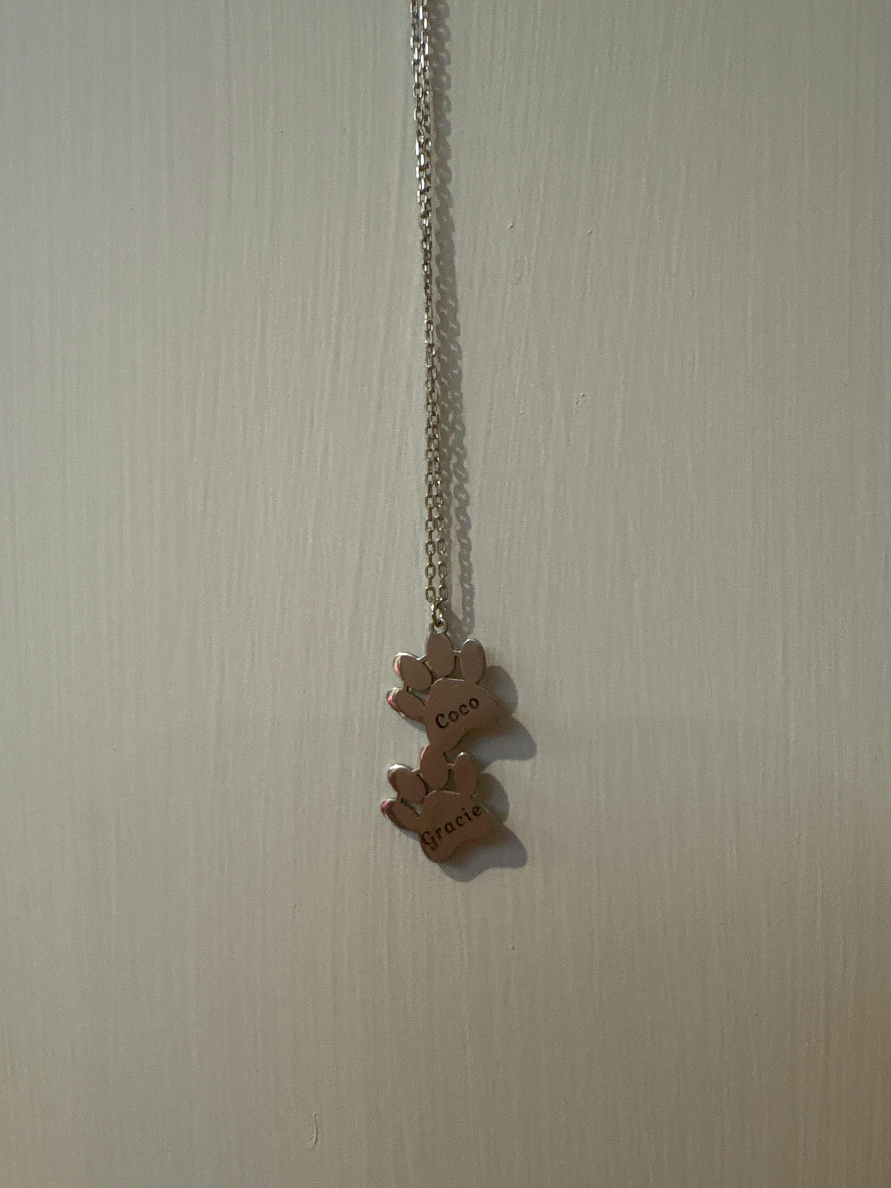Customise Your Paws Each paw print can be personalised with a name, making it a truly unique keepsake. The vertical drop design creates a modern, elegant silhouette that looks perfect worn alone or layered with other chains.